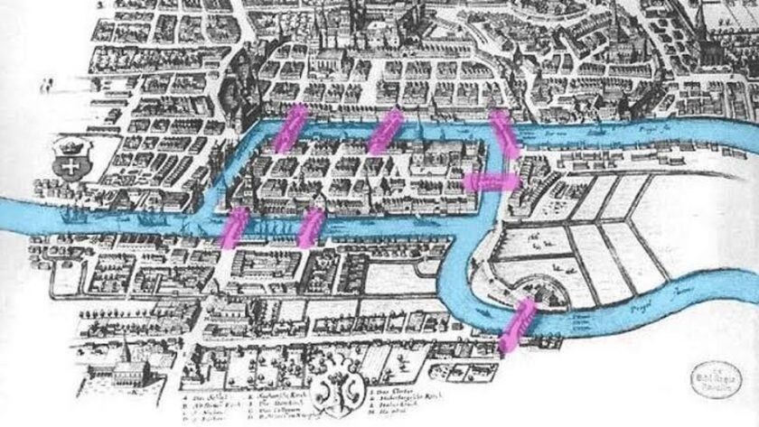 Město pruského původu Königsberg (dnes Kaliningrad v Rusku) bylo protknuto řekou Pregel a spojeno sedmi mosty, které spojovaly dvě ostrovy a protilehlé břehy, čímž město rozdělovaly do čtyř zón. Legenda vypráví, že mezi obyvateli koloval podivný zvyk: najít trasu, která by vedla přes všechny mosty jednou. Nápad byl jednoduchý, ale nikomu se nedařilo úspěšně tuto výzvu splnit.