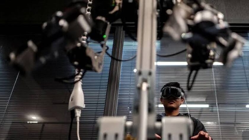 TOKIO – Pár robotických paží se otáčí a napodobuje pohyby operátora, který nosí VR headset a točí rukou jako kouzelník. S dostatečným tréninkem mohou tyto paže vykonávat každodenní úkoly autonomně, uvádí tokijská společnost Enactic, která vyvíjí humanoidní roboty k mytí nádobí a správě prádla v japonských domovech pro seniory, které trpí nedostatkem personálu.