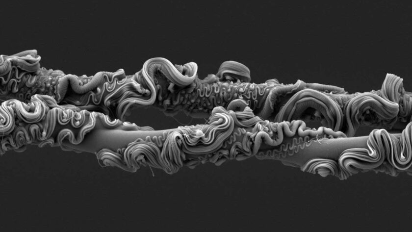 Mezi nejzajímavějšími snímky je fotografie australského pavouka, známého jako net-casting spider (Asianopis subrufa). Tento predátor se vyznačuje neobvyklou technikou lovu, kdy místo stavění pavučiny drží své síťové úlovky ve čtyřech předních nohách a vrhá je na nic netušící hmyz. Jeho hedvábí, které je zobrazeno na elektronovém mikroskopu, má elastické jádro obalené tvrdšími vlákny, což mu poskytuje velkou sílu a výjimečnou pružnost.