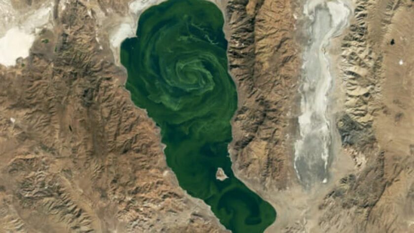 Zelený vír na Pyramidovém jezeře: Příběh osmi tisíc let starého toxického sinice